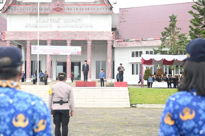 Bertindak sebagai komandan upacara Paur Subbagbinkar Bag SDM, Ipda J. Tampubolon SH diikuti TNI/Polri, ASN Pemkab Humbahas serta para pelajar.