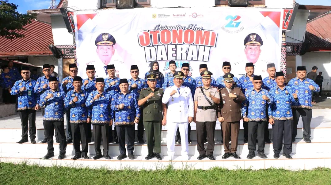 DAIRI, ASPIRASInews – Wakil Bupati Dairi, Wahyu Daniel Sagala memimpin upacara peringatan Hari Otonomi Daerah (Otda) ke XXIX, Jumat 25 April 2025. Dalam upacara yang digelar didepan kantor bupati Dairi tersebut, wakil bupati membacakan sambutan Menteri Dalam Negeri, Tito Karnavian. Peringatan Hari Otonomi Daerah ke-XXIX tahun 2025 mengusung tema “Sinergi Pusat dan Daerah Membangun Nusantara Menuju Indonesia Emas 2045.”