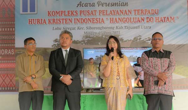 TAPUT, ASPIRASI.news – Wakil Bupati Humbang Hasundutan, Junita Rebeka Marbun menghadiri peresmian Komplek Pusat Pelayanan Terpadu Huria Kristen Indonesia (HKI) “Hangoluan do Hatam” Lobu Siregar, Minggu (15/6/2025), di Sopo Godang Gereja HKI Hutasoit Pardomuan, Desa Siborong-borong I, Kecamatan Siborong-borong, Tapanuli Utara.