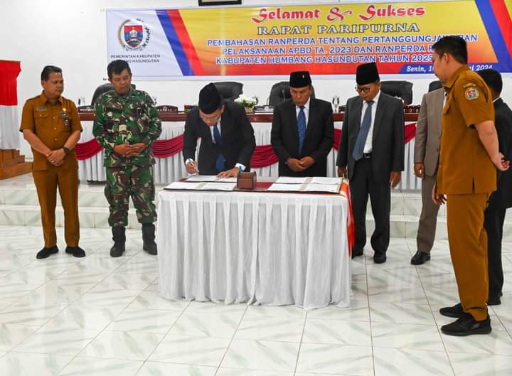 Humbahas, ASPIRASI.news – Ranperda tentang Pertanggungjawaban Pelaksanaan APBD 2023 dan Ranperda RPJPD (Rencana Pembangunan Jangka Panjang Daerah) Kabupaten Humbahas tahun 2025-2045 disetujui DPRD dan Pemkab Humbahas dalam rapat paripurna, Senin (24/6).