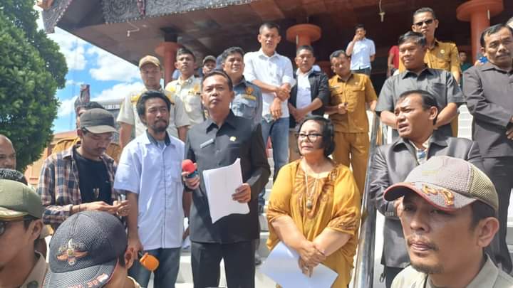 Ketua DPRD Taput, Arifin Rudi Nababan bersama Wakil Ketua Reguel Simanjuntak dan Fatimah Hutabarat, saat menerima massa pendemo berjanji akan membahas semua tuntutan tersebut bersama pimpinan dan anggota lainnya secara kolektif kolegial.