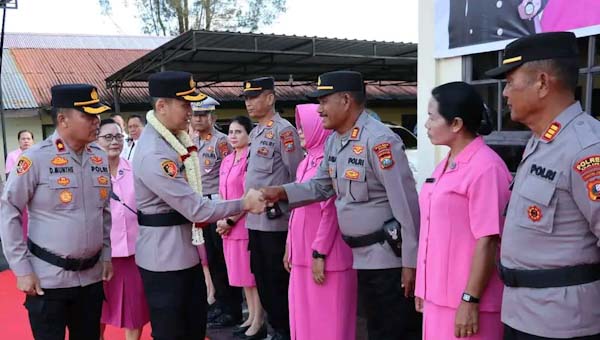 Faisal pun tampak bersalaman dengan seluruh personil maupun para ASN yang bertugas di Polres Dairi, sembari berpamitan. | Gerson Tobing