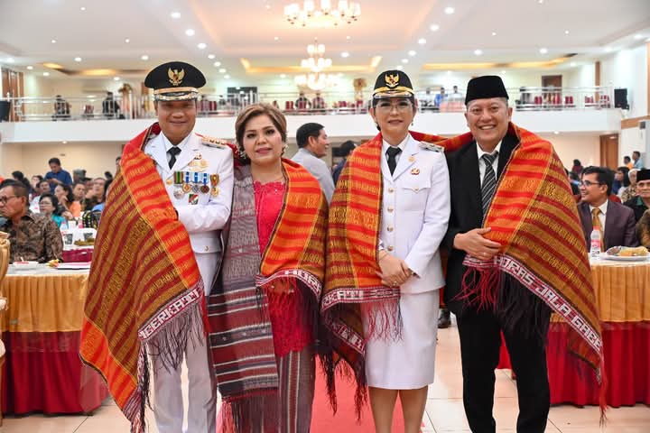 Bupati Humbahas Oloan P Nababan dan Wakil Bupati Humbahas Junita Rebeka Marbun, mengucapkan terima kasih kepada semua undangan yang berkenan hadir dalam acara doa bersama pasca pelantikan di Istana Kepresidenan.